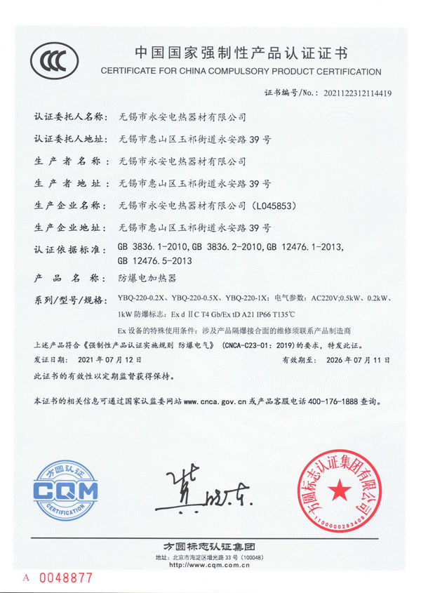 CCC证书-防爆电加热器